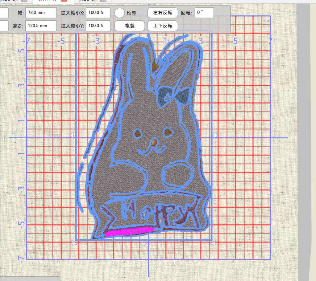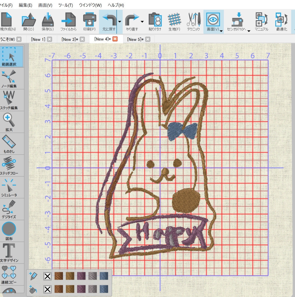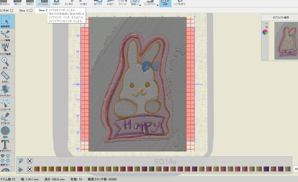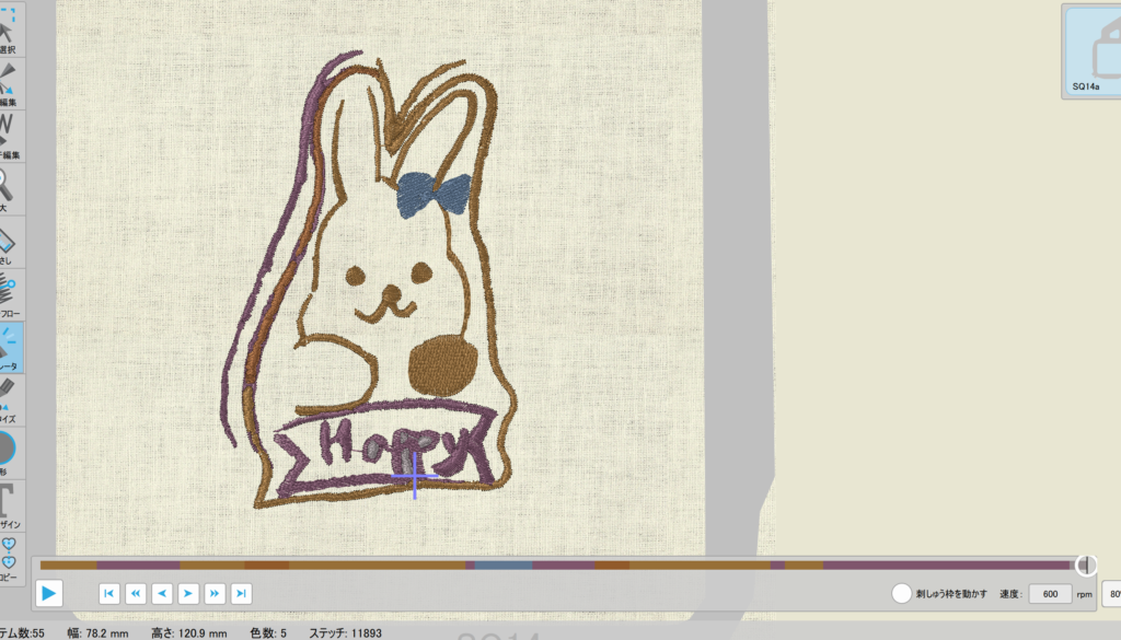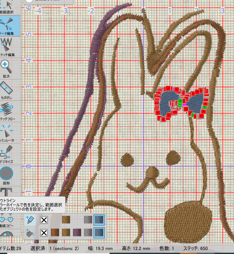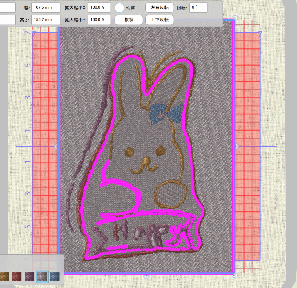 ここで、糸替え頻度がすくなくなるようにしたいのでデザインで色がまとまるよう選択する(うさぎの外側を茶色に)
