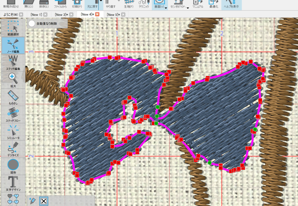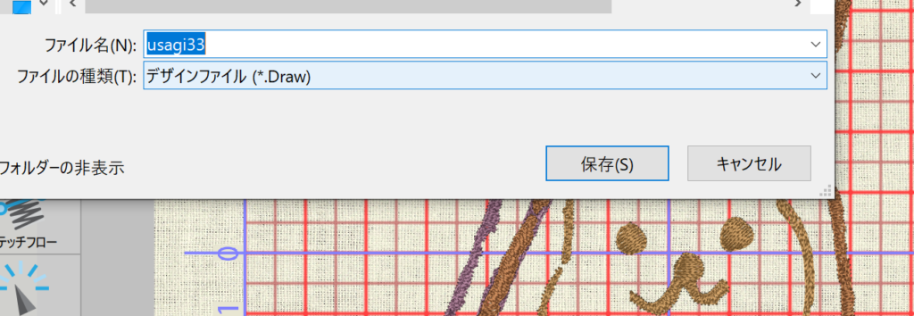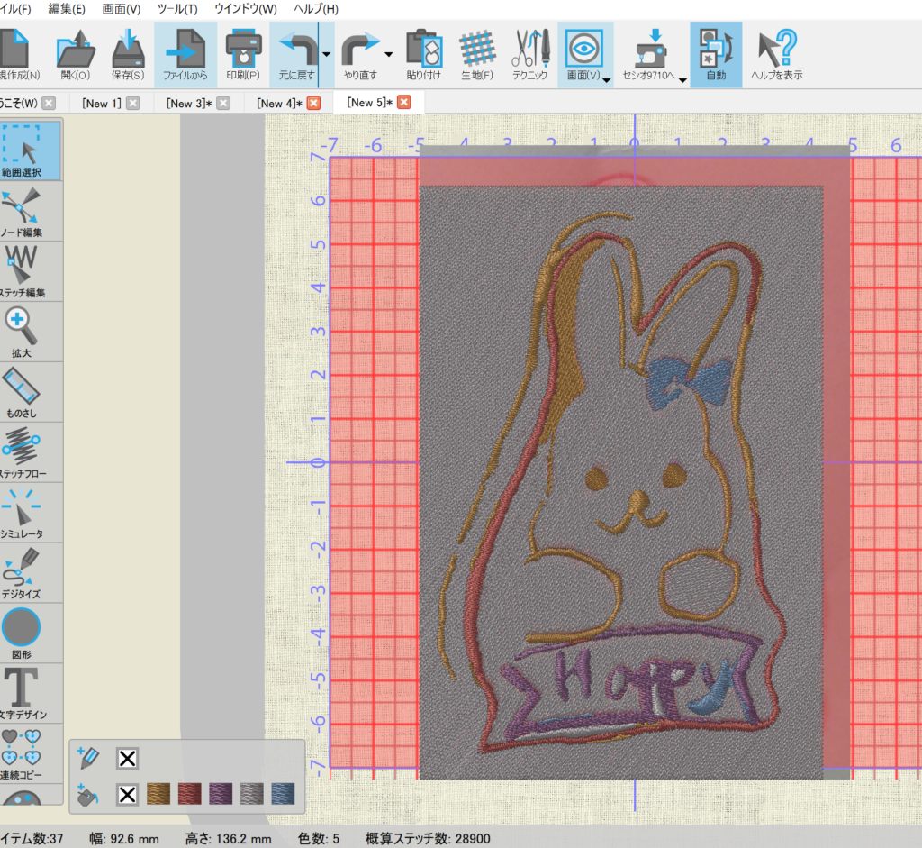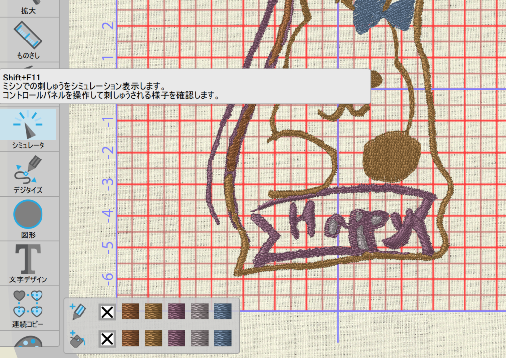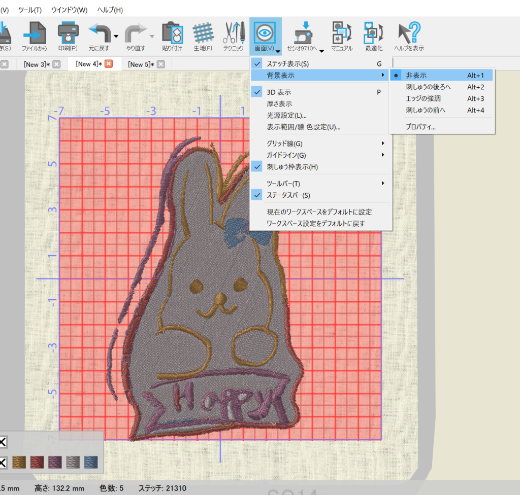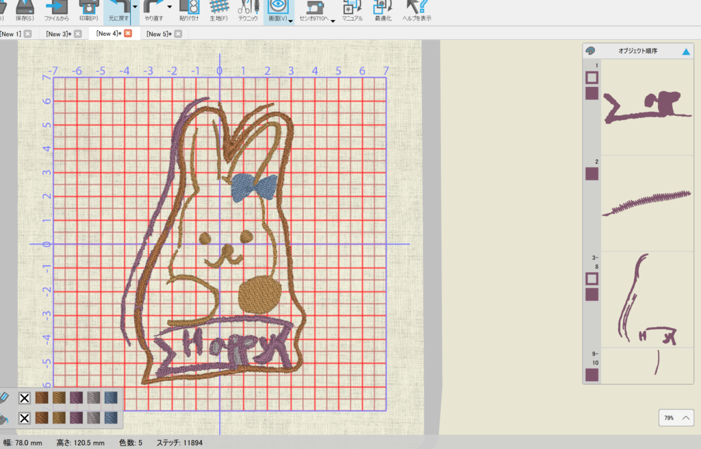 ここで、糸替え頻度がすくなくなるようにしたいのでデザインで色がまとまるよう選択する(うさぎの外側を茶色に)
