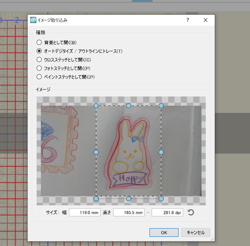 「オートデジタイズ/アウトラインにトレース(T)」を選択