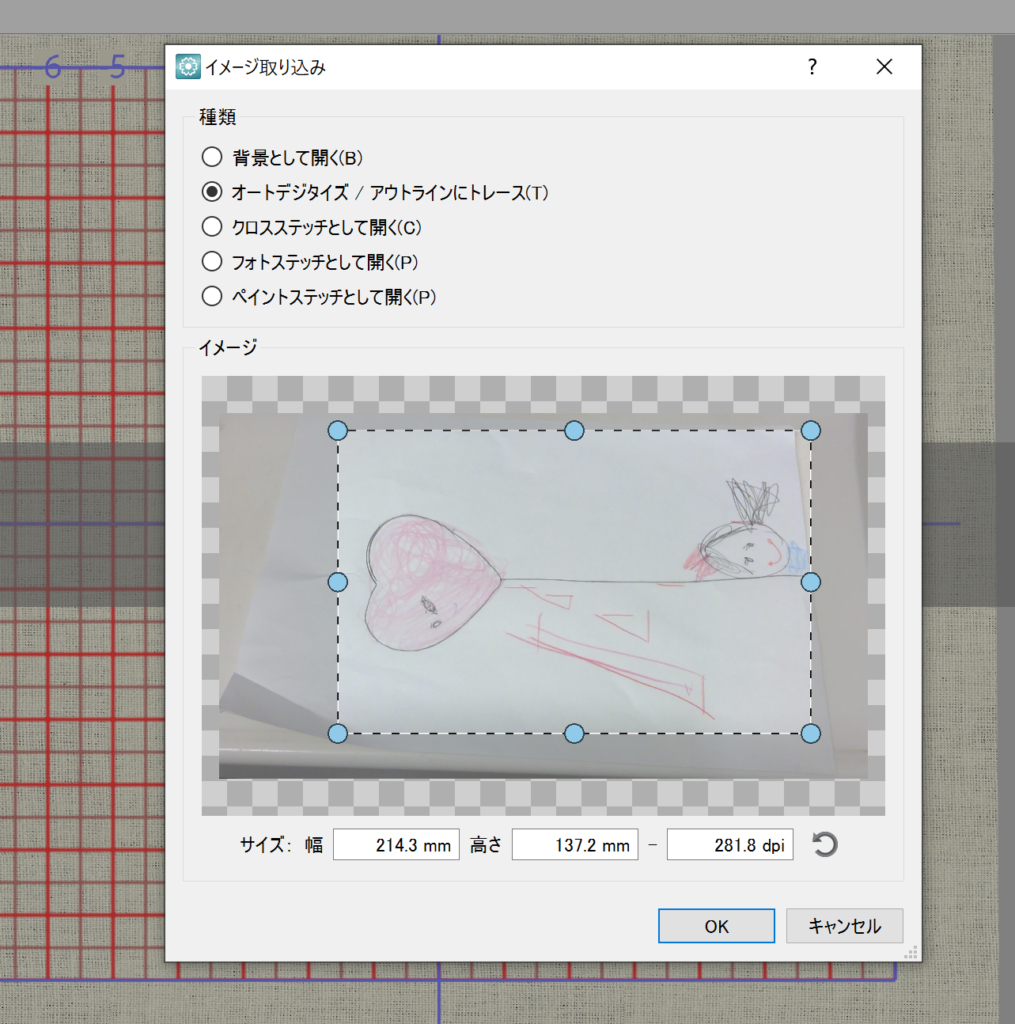 「オートデジタイズ/アウトラインにトレース」を選択