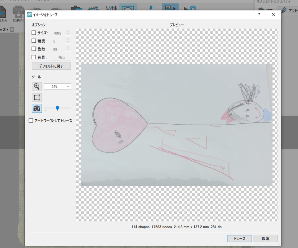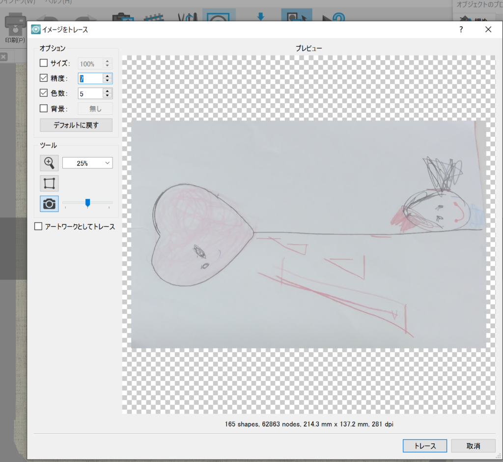 色鉛筆を使用して薄いタッチで描いたイラストをオートデジタイズしてみる。