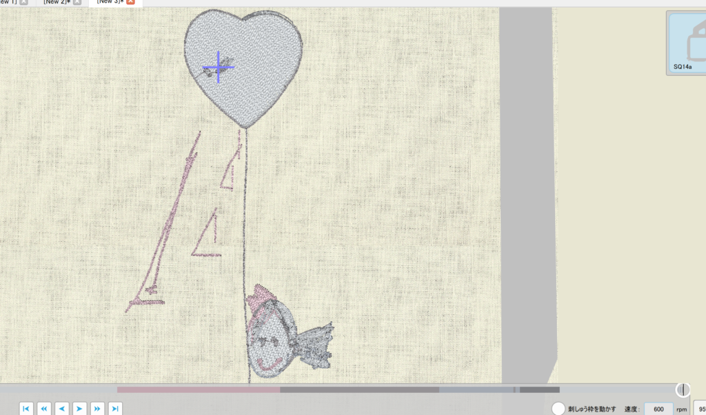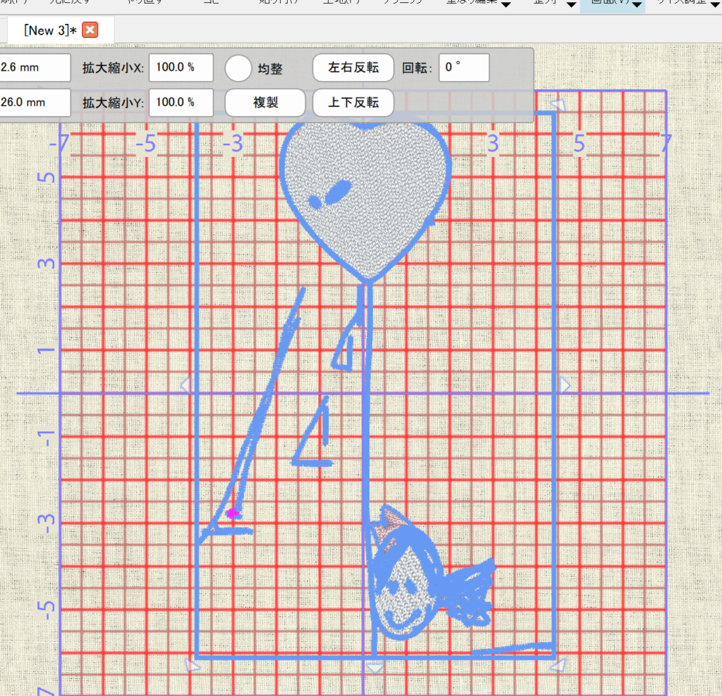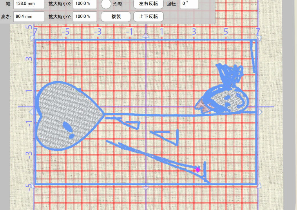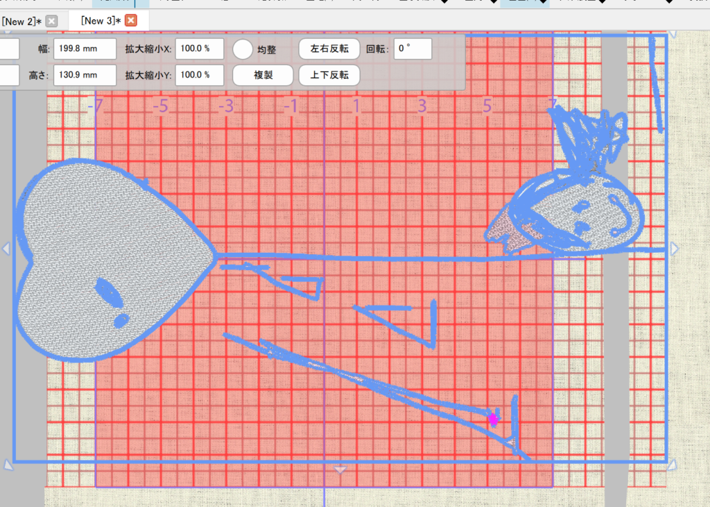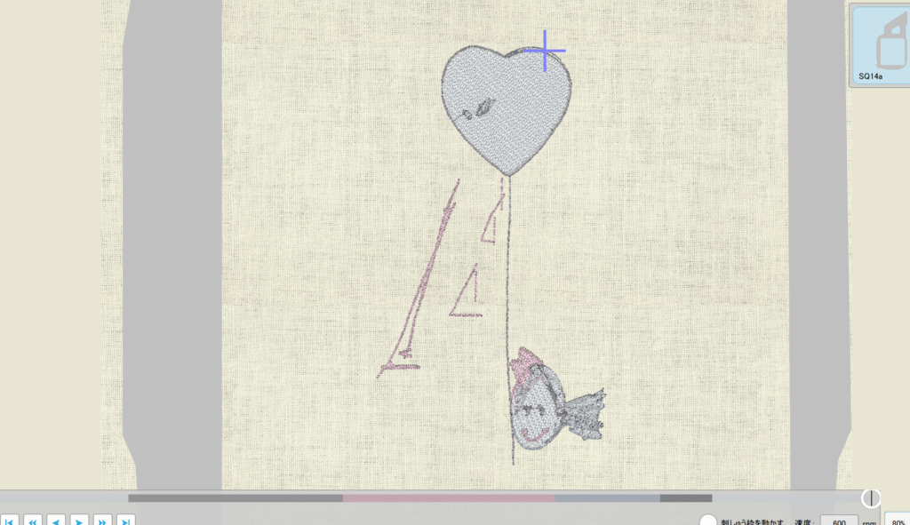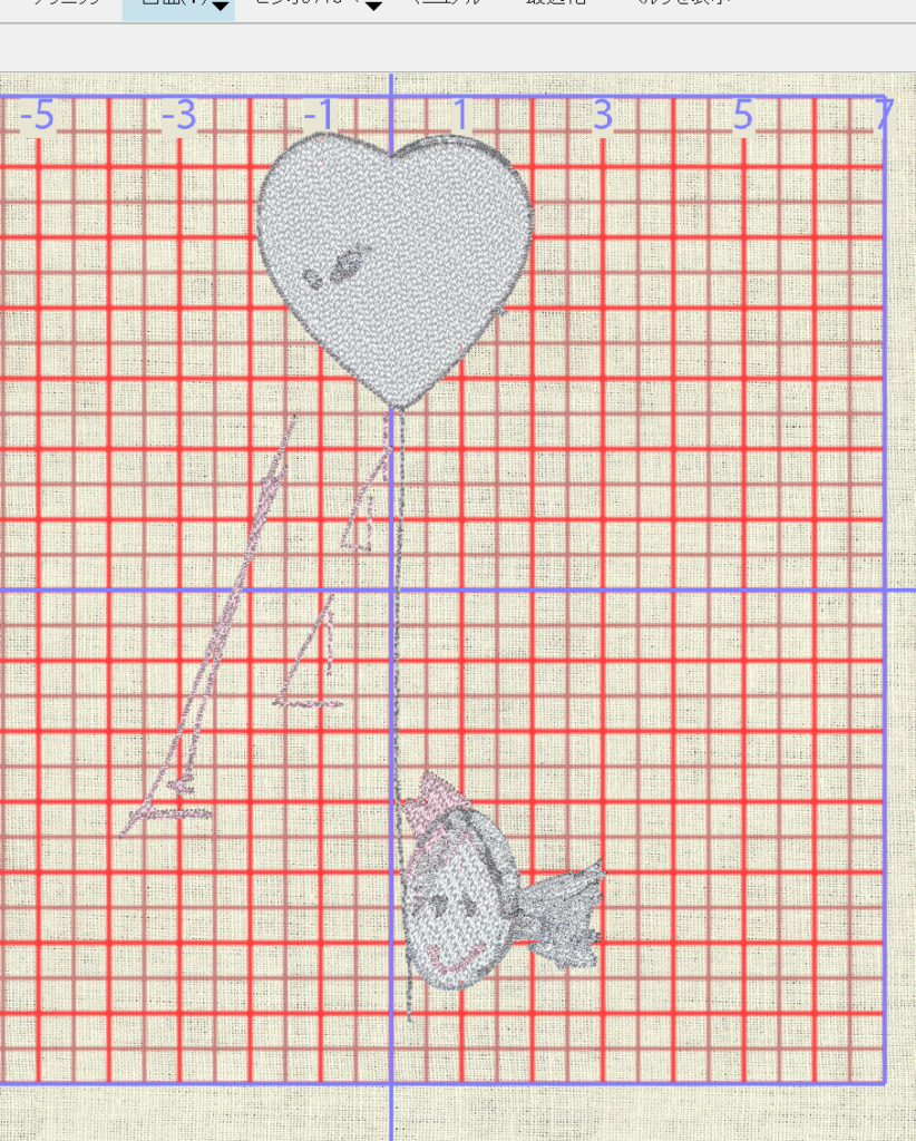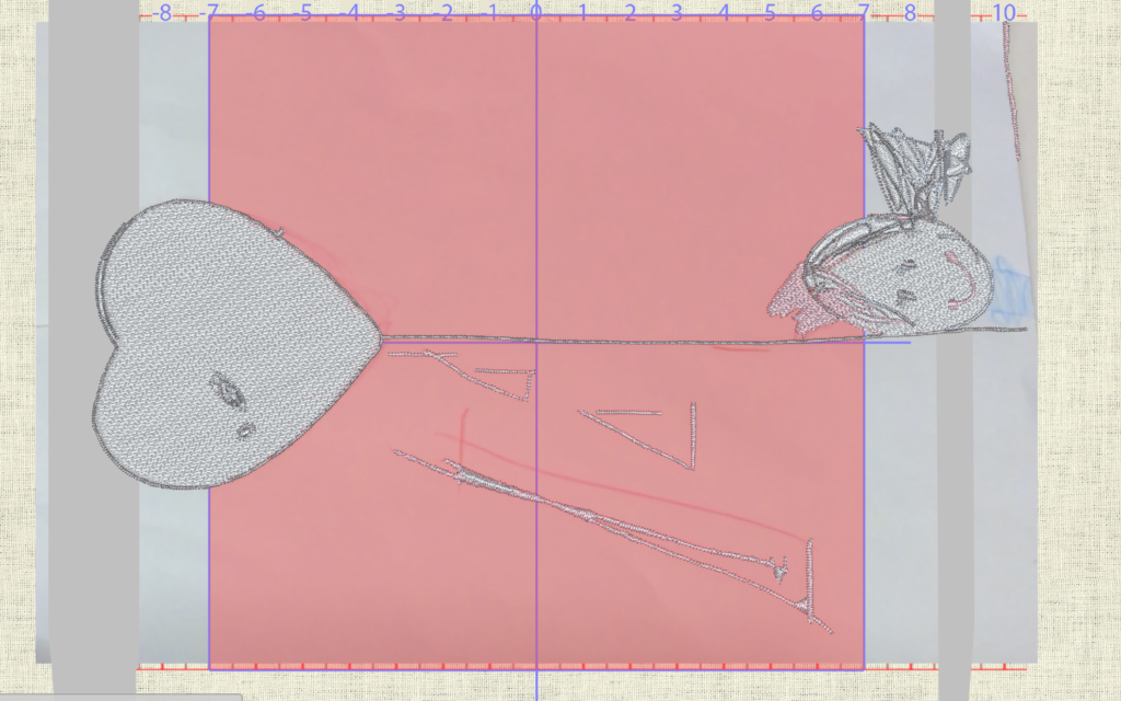刺繡枠からはみ出しているので枠内に収める