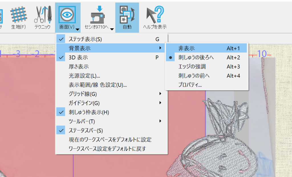 「画面」→「背景表示」→「非表示」