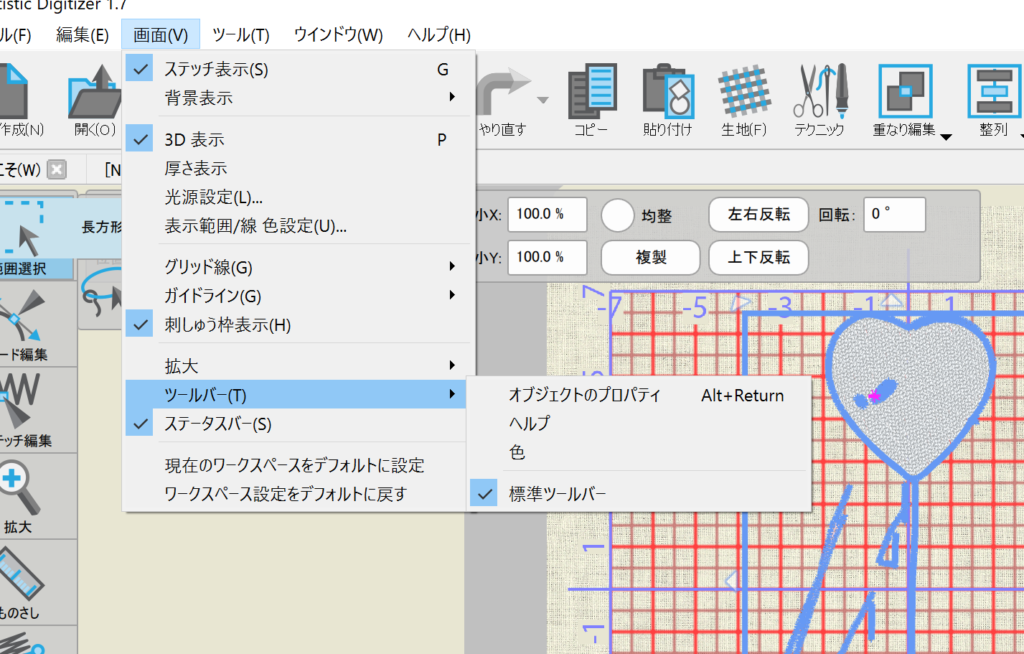 「画面」→「ツールバー」→「オブジェクトのプロパティ」