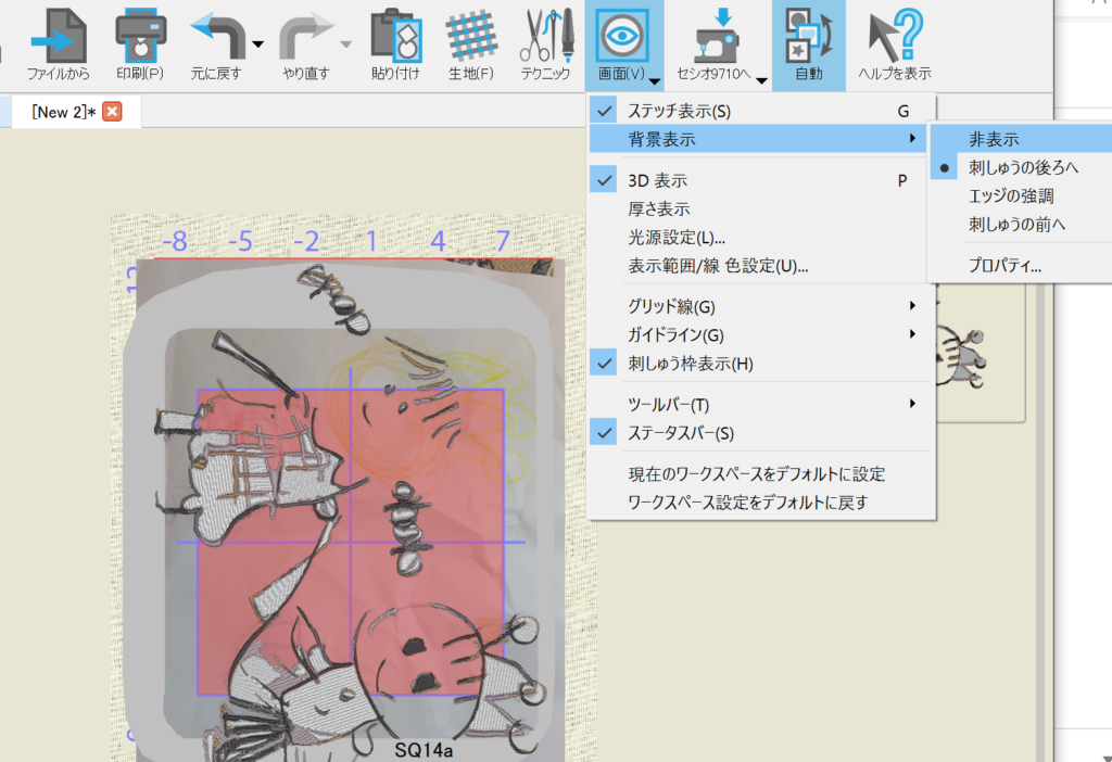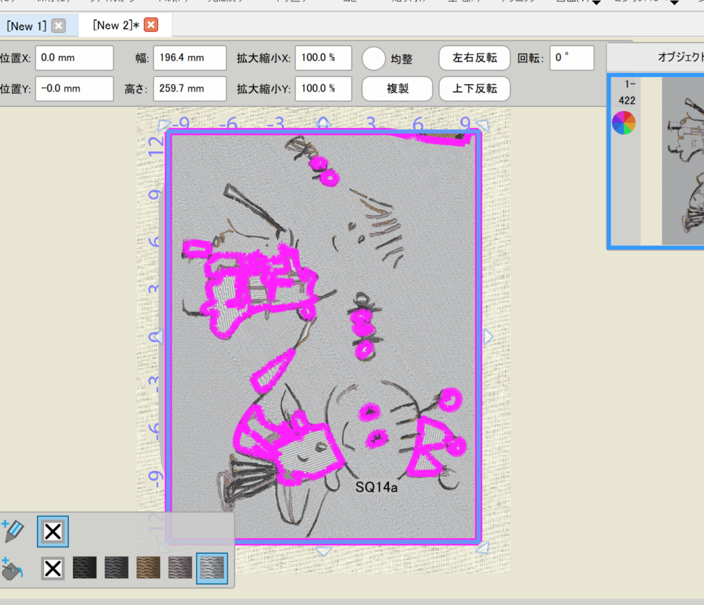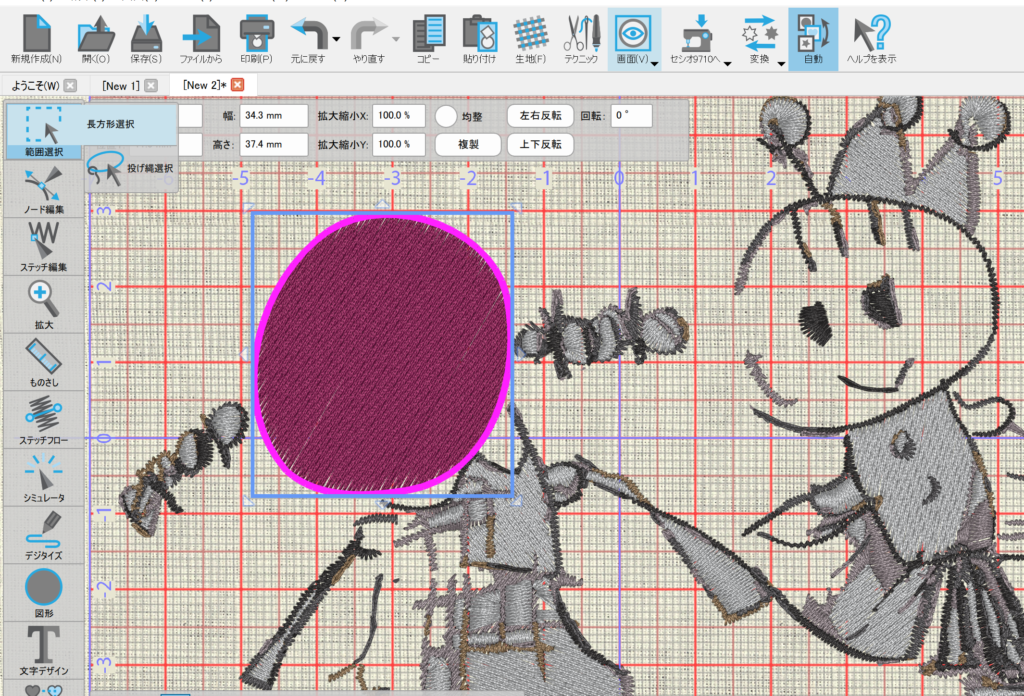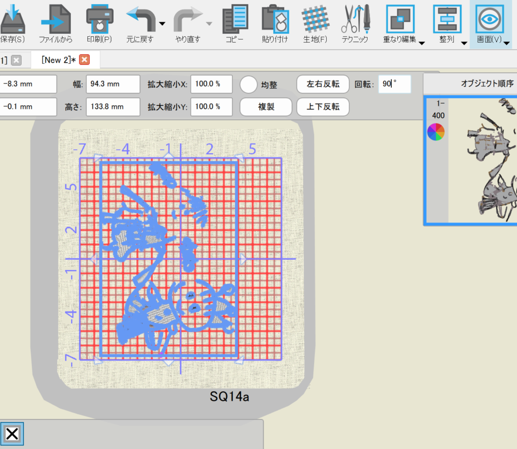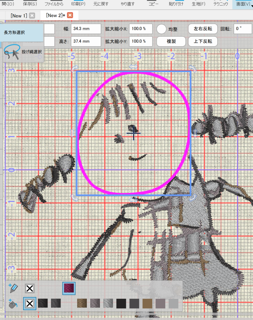 刺繡枠に収まるように全て選択