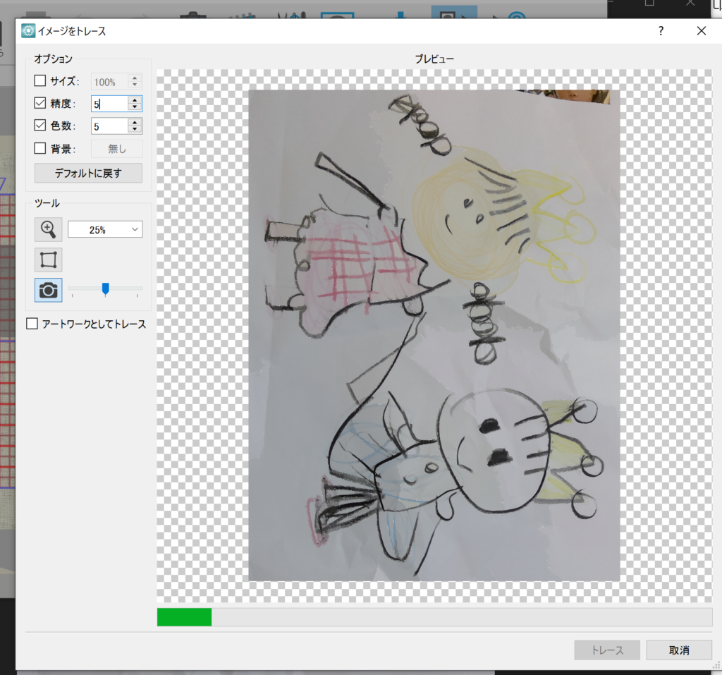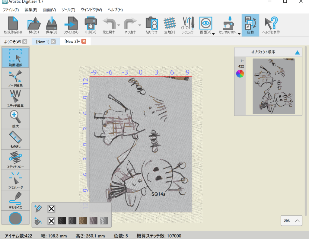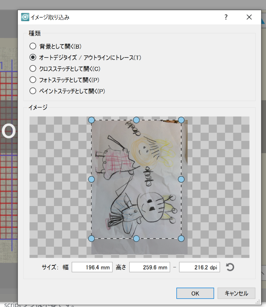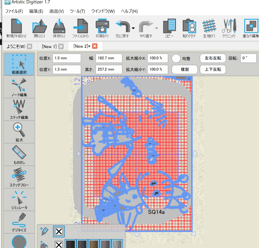 手描きイラストからジャノメ アーティスティックデジタイザー(JANOME artistic digitizer)でオートデジタイズする。